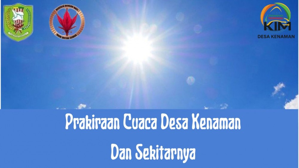 Kenaman,KIM DBT Desa Kenaman -Prakiraan cuaca untuk Daerah Desa Kenaman Dan Sekitarnya untuk esok hari adalah mendung dengan kemungkian hujan, dimohon untuk selalu waspada dalam melakukan aktivitas karena kondisi cuaca di beberapa daerah sangat ektsrem dan juga dihimbau untuk warga Desa kenaman dan sekitarnya yang akan melakukan perjalanan jauh untuk mengecek keadaan diri dan kendaraan,untuk melihat data prakiraan cuaca yang telah disiapkan oleh Tim Berita KIM Desa Kenaman yang langsung terhubung online ke BMKG(Badan Meteorologi,Klimatologi dan Geofisika) dengan mengklik portal dibawah ini.